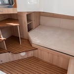 Jacht Nikhen Aquasun 34 AftCab podzielony jest na część dzienną, mieszkalną do wspólnego spędzania czasu z załogą oraz część nocną, sypialnianą znajdującą się pod pokładem.