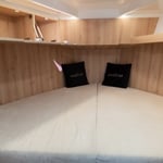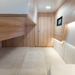 Jacht przeznaczony jest nawet dla 8-osobowej załogi, jednak pełny komfort osiągany jest przy 6 osobach. Pod pokładem jachtu Nikhen Aquasun 34 AftCab znajdziemy trzy sypialnie. Sypialnia dziobowa z dużym trójkątnym, dwuosobowym łóżkiem oraz licznymi szafkami. Sypialnia środkowa z rozkładanymi materacami zapewniająca wygodny nocleg dla dwóch osób oraz kabina rufowa z dwoma oddzielnymi łóżkami. Aby wejść do tej kabiny nie trzeba przechodzić przez jacht, można skorzystać z bezpośredniego wejścia znajdującego się na platformie rufowej. Ponadto do tej kabiny przypisana jest własna toaleta z prysznicem (wejście do łazienki bezpośrednio z kabiny) Druga łazienka położona jest obok kabiny dziobowej.