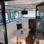 Jeśli interesuje Cię czarter Houseboata na Mazurach z otwieranym dachem i nowoczesnym wyposażeniem wynajem jachtu Aquasun 34 będzie świetnym wyborem. Jacht jest obecnie wykańczany, zostanie zwodowany w 2021 i może nieznacznie się różnić np. kolorem materacy.