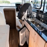 W części dziennej do dyspozycji jest w pełni wyposażona kuchnia z lodówką elektryczną i kuchenką gazową oraz salon/jadalnia z dużą kanapą. Dodatkowo po odchyleniu części kanapy tworzy się siedzisko dla osoby, która chce towarzyszyć sternikowi siedząc obok niego. Stanowisko sternika wyposażono w regulowany fotel umożliwiający wygodne prowadzenie jachtu w pozycji siedzącej jak i stojącej. Jacht posiada dwa stery strumieniowe i Czarter jachtu Nikhen Aquasun 34 AftCab możliwy jest bez patentu motorowodnego, jednak ze względu na wielkość tej łodzi konieczne jest doświadczenie w prowadzeniu jachtów.