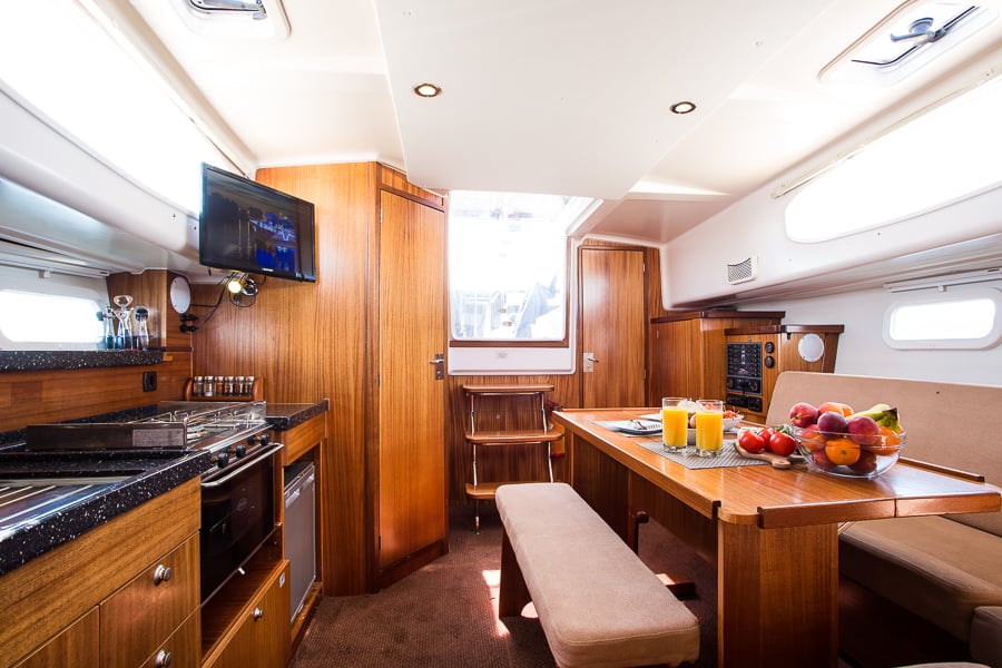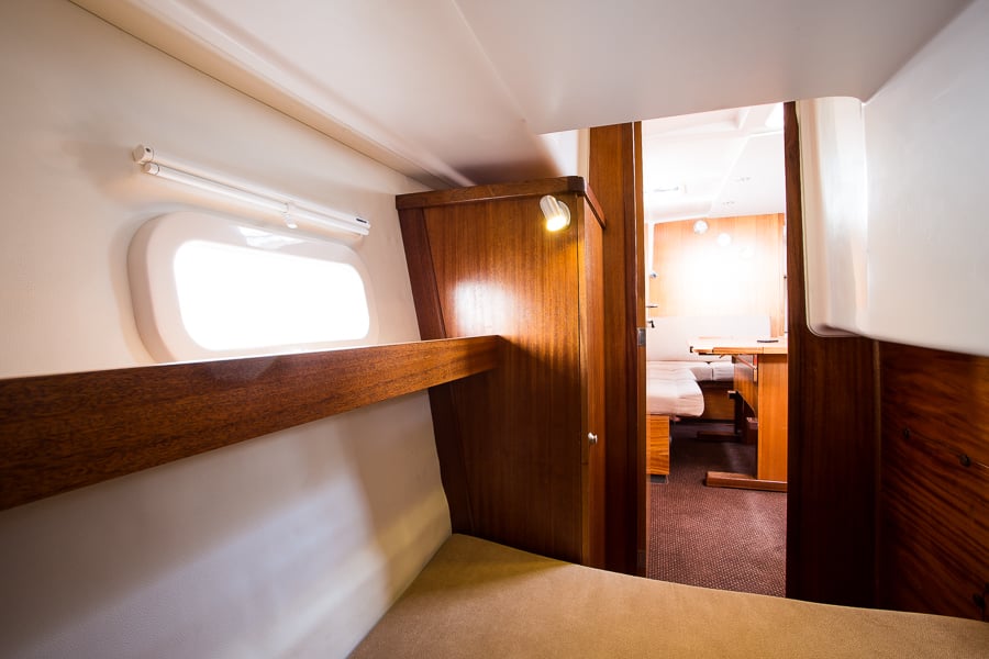 To jednostka o wysokim komforcie bytowania 6 -osobowej załogi. 2 dwuosobowe kabiny (każda jest elegancko i gustownie urządzona) oraz rozkładana kanapa w salonie dają poczucie intymności i wygody. Jacht wyposażony jest w pokład słoneczny z wygodnym materacem do opalania, a kokpit pomieści całą załogę podczas wieczornych biesiad. Ponadto szerokie półpokłady zapewniają bezpieczną komunikację dla dzieci między dziobem a kokpitem.