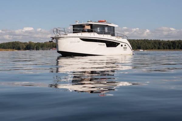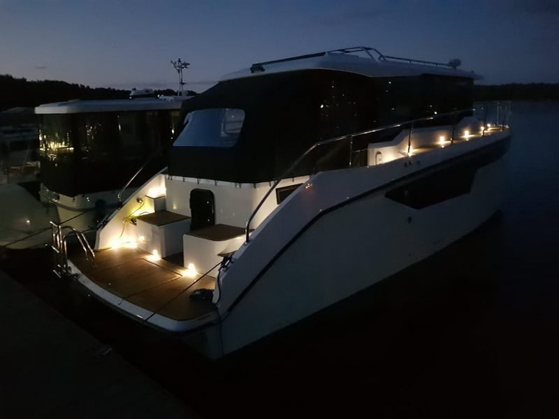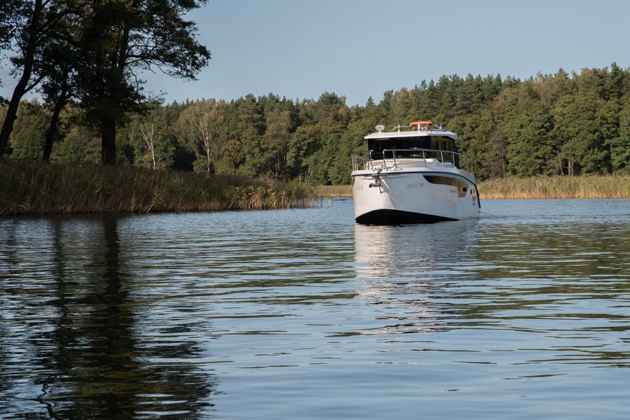 Optymalny układ i wyposażenie to nie jedyna innowacja w tej nowoczesnej łodzi typu hausboot. Jacht napędzany jest silnikiem wysokoprężnym o mocy 50 KM z napędem hydraulicznym. Zarówno ster dziobowy, jak i rufowy są również napędzane hydraulicznie i dlatego są wolne od problemów elektrycznych oraz ograniczeń w czasie użytkowania. Pozwala to nawet mało wykwalifikowanemu sternikowi w doskonałych manewrach cumowniczych.