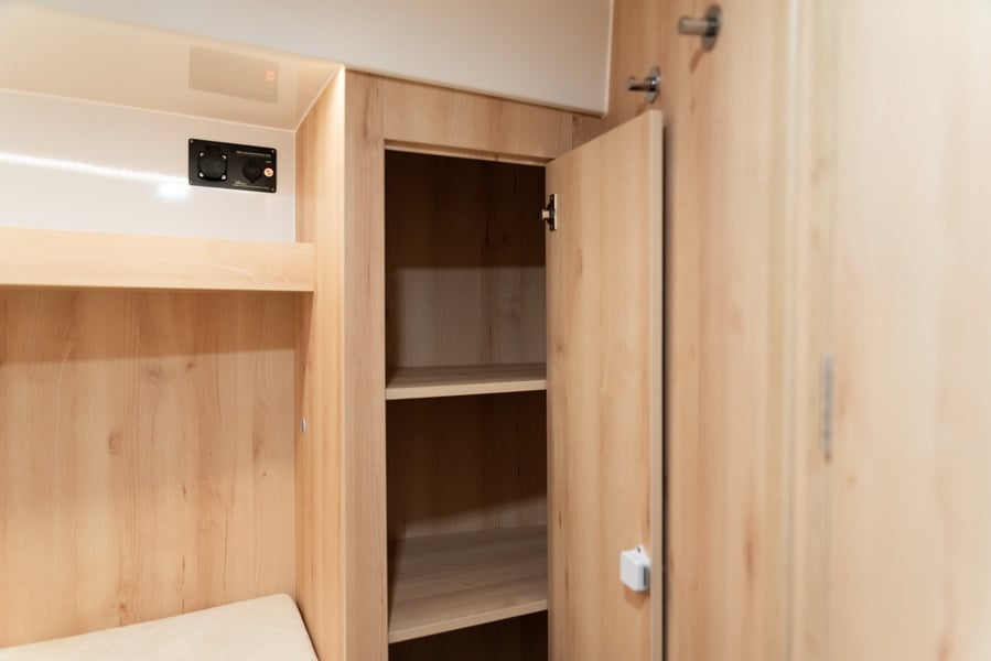 Ciepła woda, mocny układ słoneczny, kilka gniazd samochodowych 12 V i oczywiście również gniazdka 230 V (do użytku z podłączeniem zasilania z lądu) uzupełniają ofertę.