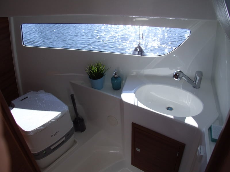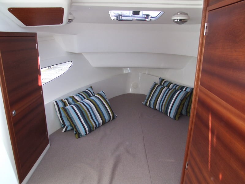 W części dziobowej znajduje się oddzielona kabina dla dwóch osób, następnie idąc w kierunku rufy mamy otwartą hundkoje dla dwóch osób. Kolejne dwie osoby mogą spac w mesie na rozkładanej kanapie. Poza miejscami sypialnymi w przestrzeni mieszkalnej jest zamykana, przestronna toaleta z umywalką, kanapa ze składanym stołem oraz kambuz ze zlewem, kuchenką i lodówką. W kokpicie jachtu znajdzie się kanapa w kształcie litery L, a na rufie znajduje się przestronna platforma kąpielowa. Pogłębiony pokład dziobowy zapewni bezpieczeństwo podczas odpoczynku lub w trakcie poruszania się po łodzi.