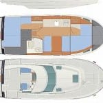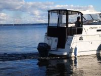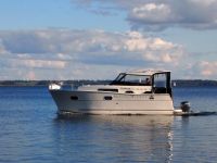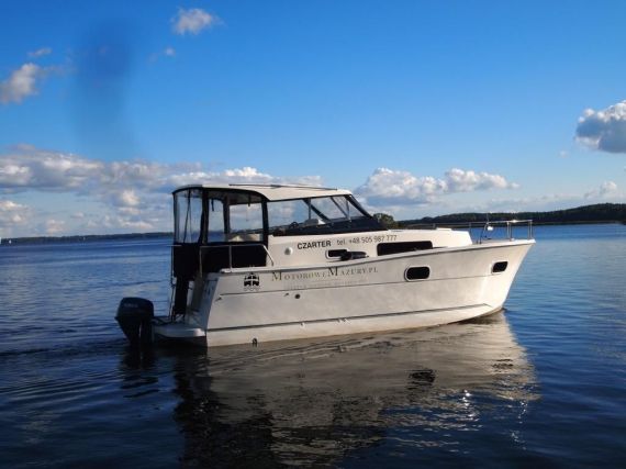 co zapewnia dobrą ochronę przed słońcem i deszczem. Idealne właściwości nautyczne połączone z mocnym silnikiem 25 KM, power trimem i sterem strumieniowym dają