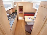 Wnętrze zapewnia wygodę jak w domu. Jacht posiada dwie niezależne kajuty oraz oddzielnie zamykaną toaletę z WC morskim oraz umywalką. Przeznaczony jest dla 6 osób (posiada
