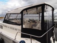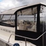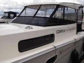 - składane przednie przeszklenie/bimini (można podwinąć i schować pod twardym dachem)