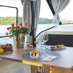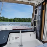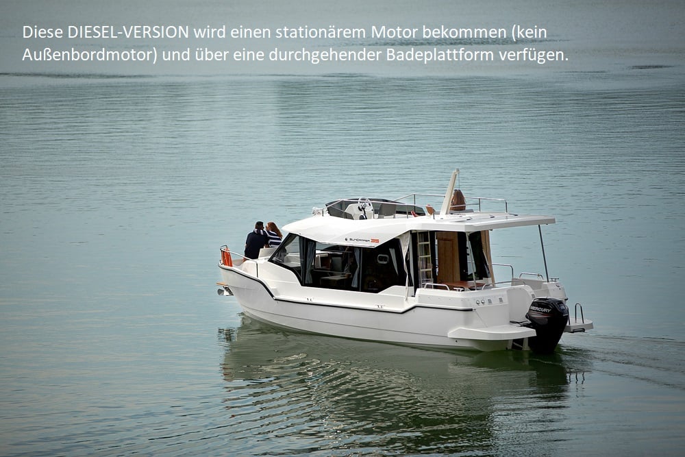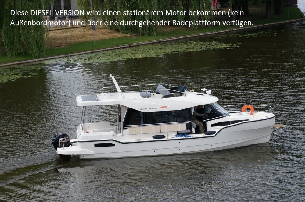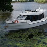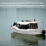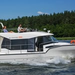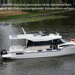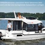 Suncamper 35 Flybridge Diesel to doskonała luksusowa jednostka typu houseboat do rekreacyjnego pływania. Wyróżnia się nowoczesną sylwetką, doskonałym hydrodynamicznie kadłubem , małym zanurzeniem, ekonomicznością oraz świetną jakością wykonania. Jasne i przestronne wnętrze oferuje pełną wysokość stania w kabinach, 2 wygodne łazienki czy wyposażoną kuchnię. Komfort na zewnątrz zapewniają: duży funkcjonalny kokpit z wieloma miejscami do siedzenia, pokład słoneczny na dachu z miejscem do opalania się oraz opcjonalnym, dodatkowym stanowiskiem sterowym, tzw. flybridge, jak również ławeczka dziobowa czy wygodne przejścia wokół łodzi.