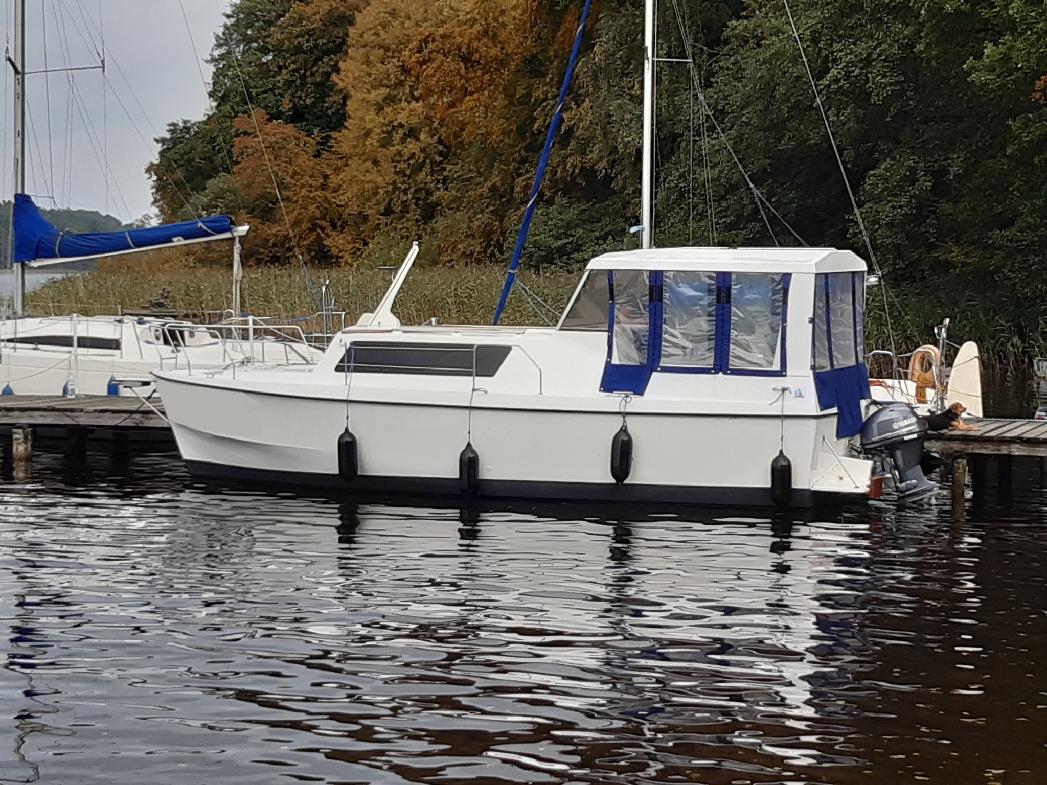 Weekend 820 to nowa, komfortowa i dobrze wyposażona łódź idealna do uprawiania turystyki wodnej bez patentu. Łódź przeznaczona jest do 6-ciu osób. Na dziobie jest otwarta kabina dla 2 osób a tylna kabina również dla 2 osób. W środkowej części po złożeniu stolika znajdują się miejsca do spania dla 2 osób. W łazience znajduje się WC chemiczne oraz prysznic. W chłodniejsze wieczory ogrzewanie Webasto zapewni nam komfort wypoczynku. Aneks kuchenny wyposażony jest we wszystko, czego potrzebujesz na wodzie podczas wodnej podróży: lodówkę, kuchenkę turystyczną, zlew oraz naczynia, garnki oraz sztućce itp.
